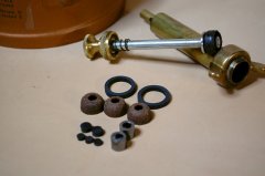 PHOEBUS 625、725ストーブのハンドル部スピンドル引き抜き専用工具 頑固に固着したスピンドルも簡単に引き抜けます。 特大の蝶ネジは、少ない力で楽に回すことが出来ます。 当店プライベートブランド「OCSS」の商品です。 【使い方】 スピンドルに中空のスリーブネジ棒を差し込み、外側の真鍮製スリーブを被せてスピンドルの割ピンが入る穴に専用ピンを 差し込みスリーブのスパナ掛けにスパナを掛けて押さえ、大きな蝶ネジを指で回して引き抜きます。 苦労せずに簡単に引き抜くことが出来ます。ホエーブスのメンテナンスには、必需品です。 材質:(スリーブ)ステンレス、真鍮製 ・(ピン):ステンレス製 ※スピンドルは、旧型〜新型まで同じ太さで共通になりますが、摩耗やワリピンが入る穴周辺のバリ、変形が あるとスリーブネジが引っ掛り入らないことがあります。引っ掛る場合は、ヤスリで研磨してバリや変形を修正する必要があります。